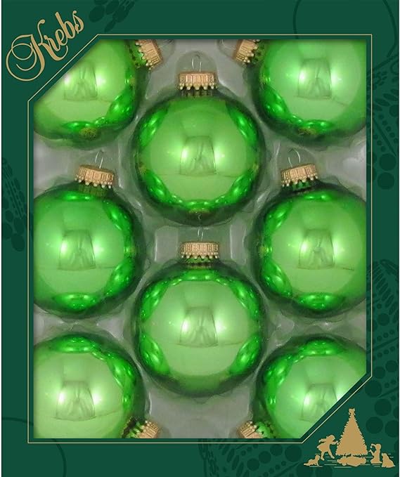 Christmas Tree Ornaments – 67mm / 2.625″ [8 Pieces] Designer Glass Balls from Christmas by Krebs – Handmade Seamless Hanging Holiday Decorations for Trees (Shiny Jade Lime Green)