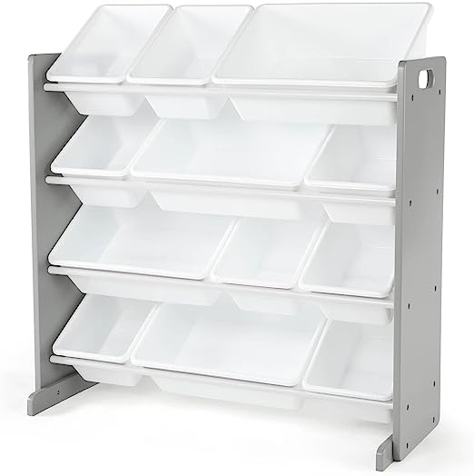 Humble Crew, Grey/White Kids Toy Organizer with 12 Storage Bins, Toddler
