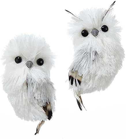 These White and Silver Hanging Owl Ornaments are a charming addition to any holiday decor or Christmas tree. This assortment features 2 owls, one with horns and one without. Both have a soft plush design and feather accents on the wings and tail.