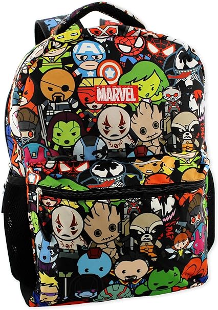 Marvel Kawaii Avengers Boys Girls 16″ School Backpack (One Size, Black/Multi)