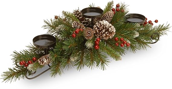 FESTIVE CANDLEHOLDER: This centerpiece features three steel plates each hold a single pillar (3 inches in Diameter) style candle with 58 individually crafted branch tips.
